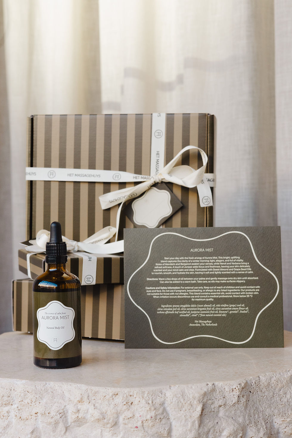 Beyond offering massages, we also provide our unique oils and gift cards through our webshop. We focus on personal care and ensure a calming experience for each of our clients, creating a sanctuary of peace in Amsterdam.